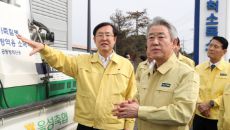 [이데일리 김태형 기자] 강호동(오른쪽) 농협중앙회장과 안병우 축산경제 대표이사가 5일 충북 음성군 삼성면 거점소독시설을 방문- 6시간전
