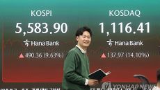 코스피, 9.6% 급등해 5,580대…상승폭 역대 최대 490포인트