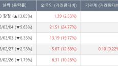 [장중수급포착] 소룩스, 외국인 5일 연속 순매수행진... 주가 +13.05%