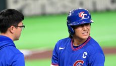 [포토] 손에 사구 맞고 교체되는 대만 천제셴