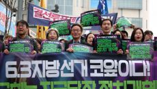 [서울=뉴스핌] 이건주 인턴기자 = 조국 조국혁신당 대표 등 야당 관계자들이 5일 오전 서울 영등포역 앞에서 열린 '2026- 13시간전