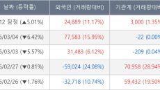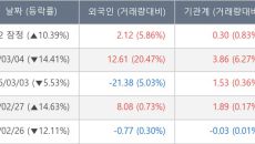 [장중수급포착] 우리산업홀딩스, 외국인/기관 동시 순매수… 주가 +10.39%