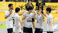 5일 의정부 경민대학교 체육관에서 열린 V리그 남자부 KB손해보험과 현대캐피탈의 경기. 승리한 현대캐피탈 선수들이 기뻐하고 있- 22시간전