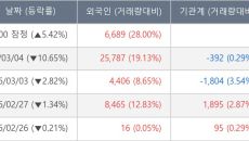 [서울=뉴스핌] 로보뉴스 = 05일 10시 15분 현재 대주전자재료(078600)는 전일 대비 19.95% (현재가 93,20- 9시간전