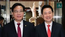 아시아투데이 이병화 기자 = 장동혁 국민의힘 대표와 송언석 원내대표가 25일 국회 당대표실에서 비공개 회의를 마친 뒤 함께 원- 2026-03-25 09:28