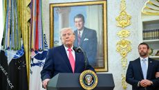 마크웨인 멀린 신임 미국 국토안보부 장관의 선서식에서 발언하는 트럼프 대통령 도널드 트럼프 미국 대통령은 현재 진행 중인 협상- 23시간전
