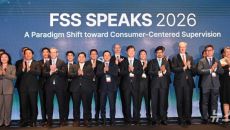[한 컷]'FSS SPEAKS' 기념촬영 갖는 이찬진 금감원장과 외국계 금융업계