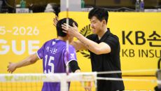 25일 의정부 경민대학교체육관에서 열린 V리그 남자부 준PO KB손해보험과 우리카드의 경기. 우리카드 박철우 감독대행이 이시몬- 15시간전