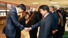 서강석 송파구청장(오른쪽)이 지난 2일 서울 송파구청 대강당에서 열린 2026년 시무식에서 직원들과 악수를 하며 인사를 나누고- 2026-01-05 11:11