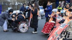 이혜훈 후보자, 출근길에 전장연과 만나