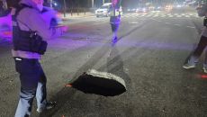 군포 능안공원사거리서 깊이 1m 땅꺼짐 발생…도로 일부 통제