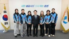 [스포츠서울ㅣ춘천=김기원기자]육동한 춘천시장이 5일 시청 접견실에서 2025-2026 컬링 슈퍼리그에서 우승한 춘천시청 컬링팀- 2026-01-05 15:48