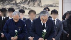 대형 화재로 74명의 사상자가 발생한 대전 안전공업의 손주환 대표이사 등 임직원들이 22일 대전시청 1층 로비에 마련된 합동분- 1시간전