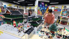 4일 서울 용산구 아이파크몰 6층에 마련된 레고코리아 공식 레고스토어 용산점에서 관계자들이 레고 작품을 관람하고 있다. 5일- 18시간전