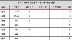 로또 1216회 당첨번호 1등 21억, '경기 잔치판이네'
