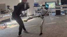격투 훈련 중, 남성 주요부위에 '발차기'…로봇 영상에 머스크 "하하"