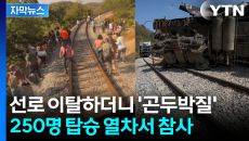 선로를 이탈한 기차가 계곡으로 곤두박질했습니다. 열차에서 분리돼 옆으로 드러누운 객차도 보입니다. 열차 밖으로 들것에 실려 나- 2025-12-29 19:58