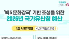 국가유산청, 2026 예산 1097억 증액한 1조4971억