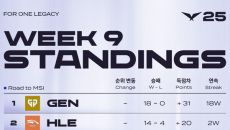 [이상민] 2025 LCK 정규 시즌 1라운드를 9전 전승으로 마무리했던 젠지가 2라운드에서도 패배 기록없이 18전 전승을 달- 2025-06-02 17:06
