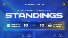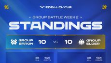 [정지우 기자] 2026 LCK컵 2주 차 경기가 마무리된 가운데, 바론 그룹과 장로 그룹이 승패 균형을 맞추며 치열한 순위- 2026-01-26 15:04