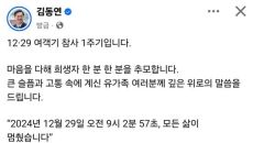 김동연 경기도지사가 179명의 아까운 목숨을 앗아간 '12·29 여객기 참사' 1주기를 맞아 희생자 추모와 함께 유족에 깊은- 2025-12-29 09:54