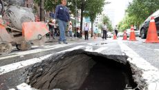 인천 2호선 서구청역 인근 1.5m 싱크홀…도로 부분 통제