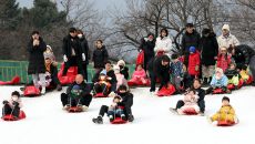 28일 경기 과천시 서울랜드 눈썰매장을 찾은 가족 단위 나들이객들이 썰매를 타며 휴일을 즐기고 있다. 과천=이제원 선임기자 ⓒ- 2025-12-29 02:01