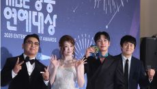 곽범, 츠키, 권화운, 기안84가 29일 서울 상암동 MBC 미디어센터에서 열린 2025 MBC 방송연예대상 포토월에서 포즈를- 2025-12-29 19:46