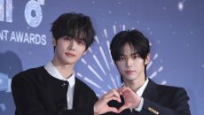 제로베이스원 규빈(왼쪽), 투어스 도훈이 29일 서울 상암동 MBC 미디어센터에서 열린 2025 MBC 방송연예대상 포토월에서- 2025-12-29 19:29