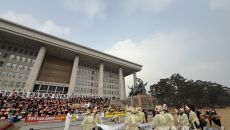 상복 입은 경북 산불피해 주민들, 국회 앞서 “특별법 시행령 전면 개정·국정조사 촉구”