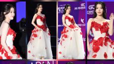 아이유, 드디어 팔색조 분위기 나왔다…장미 얹은 순백 드레스로 여신 완성