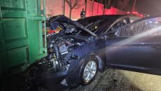 당진서 승용차 주행 중 쓰레기 적재함 들이받아 차량 화재