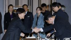 심의 위원들과 인사 나누는 정은경 장관