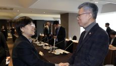 김택우 대한의사협회장과 인사 나누는 정은경 장관
