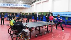 (서울=뉴스1) = 대한항공은 29일 오후 인천 서구 대한항공 탁구단 훈련장에서 대한항공 여자탁구단과 장애인 탁구선수들이 참여- 2025-12-29 16:05