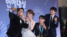 곽범, 츠키, 권화운, 기안84가 29일 서울 상암동 MBC 미디어센터에서 열린 2025 MBC 방송연예대상 포토월에서 포즈를- 2025-12-29 22:09