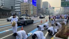삼보일배, 108배…'이 대통령 첫 출근' 청와대 앞 잇단 집회