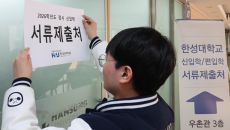 2026학년도 대입 정시모집 원서 접수가 시작된 29일 서울 성북구 한성대학교에서 입학관리팀 관계자가 서류제출 안내문을 붙이고- 2025-12-29 15:49