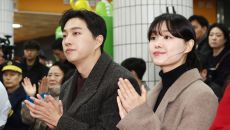 (서울=뉴스1) 김민지 기자 = 가수 송지은, 박위 부부가 29일 오후 서울 강서구 까치산역에서 열린 전역사 1역사 1동선 확- 2025-12-29 15:20