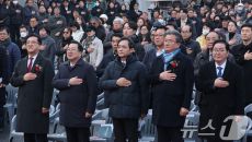 (대전=뉴스1) 김기태 기자 = 이장우 대전시장이 29일 대전 유성복합터미널 준공식에서 내빈들과 국기에 대한 경례를 하고 있다- 2025-12-29 15:06