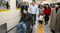 오세훈 서울시장이 29일 서울 강서구 까치산역에서 열린 전역사 1역사 1동선 확보 기념행사에서 교통약자 대표들과 함께 역사를- 2025-12-29 14:35