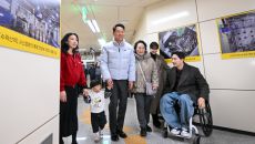 오세훈 서울시장이 29일 서울 강서구 까치산역에서 열린 전역사 1역사 1동선 확보 기념행사에서 교통약자 대표들과 함께 역사를- 2025-12-29 14:35