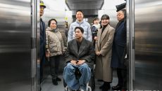 [포토] 교통약자 대표와 엘리베이터 탑승하는 오세훈 시장