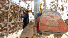2026년에도 행복한 일만 가득하길 29일 부산 수영구 광안리해수욕장 소망탑에서 구청 관계자가 방문객들이 2026년 새해 소망- 2025-12-29 23:56