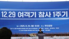 [무안=뉴스핌] 조은정 기자 = 29일 오전 전남 무안국제공항에서 열린 12ㆍ29 제주항공 여객기 참사 1주기 추모식에서 우원- 2025-12-29 13:41