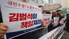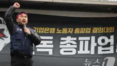 (서울=뉴스1) 김진환 기자 = 김동명 한국노총 위원장이 29일 서울 중구 을지로 기업은행 본점 앞에서 열린 기업은행 노동조합- 2025-12-29 13:38