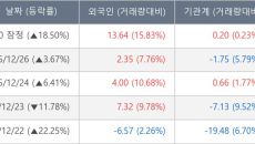 [서울=뉴스핌] 로보뉴스 = 29일 13시 30분 현재 쎄크(081180)는 외국인과 기관이 각각 4.10 만 주, 2.60- 2025-12-29 13:31