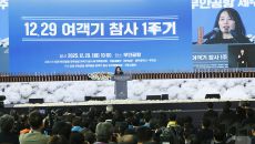 (무안=뉴스1) 김태성 기자 = 29일 오전 무안국제공항에서 열린 12.29 제주항공 여객기 참사 1주기 추모식에서 김유진 유- 2025-12-29 13:29