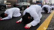 청와대 비정규직 노동자, 고용 보장 촉구하며 청와대로 삼보일배