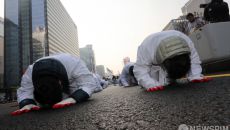 [서울=뉴스핌] 최지환 기자 = 청와대 비정규직 노동자들이 29일 서울 종로구 광화문광장에서 고용 보장을 촉구하며 청와대로 삼- 2025-12-29 11:35